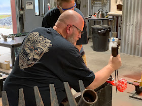 We had so much fun taking a class at the Jackson County Green Energy Park that we decided to do it again. We gathered up some friends and made arrangements with Cole Johnson to have him teach us to make glass blown pumpkins. Each pumpkin took a little over twenty minutes to make. We picked our colors and away we went.